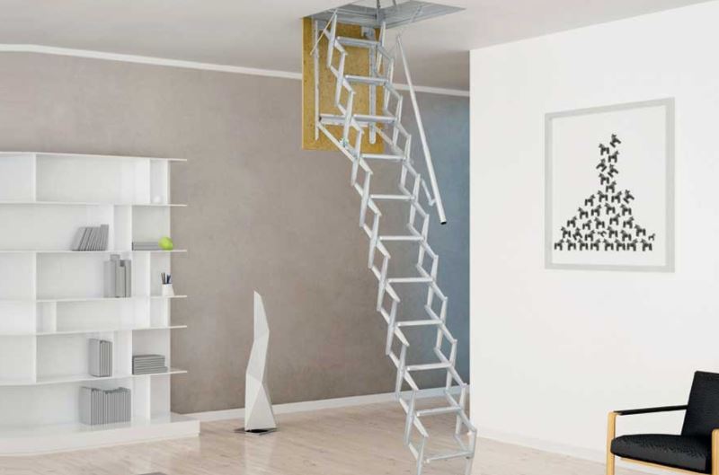 - Escaleras de ático verticales y escaleras de ático para superficies planas o inclinadas.