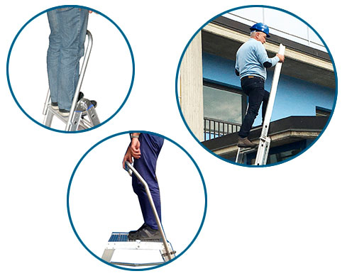 Los puntos de apoyo de las escaleras de mano deberán asentarse sólidamente sobre un soporte estable y resistente. La escalera deberá tener las dimensiones adecuadas y ofrecer la protección necesaria al utilizador. Debe ser resistente e inmóvil para que los travesaños queden en posición horizontal. Las escaleras de apoyo se fijarán de forma segura de manera que no puedan desplazarse y se eviten movimientos de balanceo.