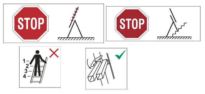 - Por una posición no correcta de la escalera, como ángulo no correcto de la escalera de apoyo o una apertura no completa de la escalera de tijera.