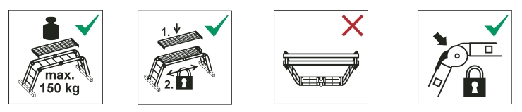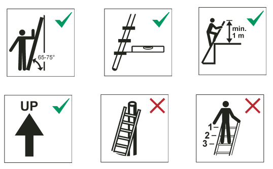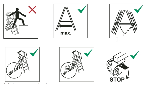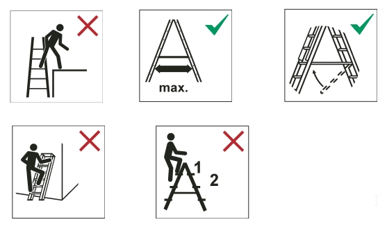 Un marcado regular y correcto de una escalera de mano ya ofrece al consumidor y usuario mucha información de las posiciones permitidas y prohibidas que puede adoptar con la escalera de mano según el modelo.